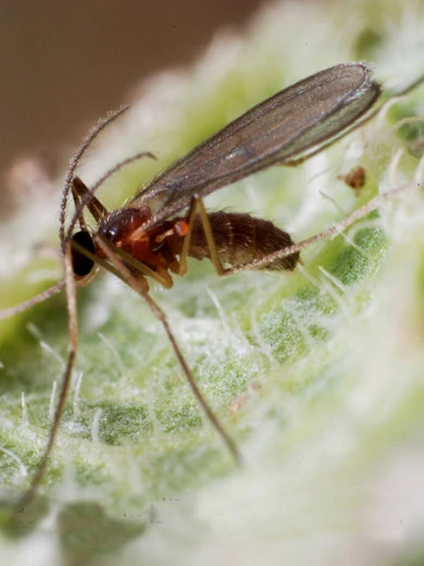 Die Gallmücke (Aphidoletes aphidimyza) ist ein sehr wirkungsvoller Nützling bei der Blattlausbekämpfung. Mit ihrem Rüssel sticht sie die Blattlaus an und spritzt ihr ein lähmendes Gift ein. Die Blattlaus kann danach keine Warnsignale mehr absetzen, so dass die Gallmücke danach Laus für Laus anstechen und aussaugen kann. Trifft die Gallmücke auf mehr Blattläuse als sie aussaugen kann, wird sie diese anstechen und nur zum Teil aussaugen.