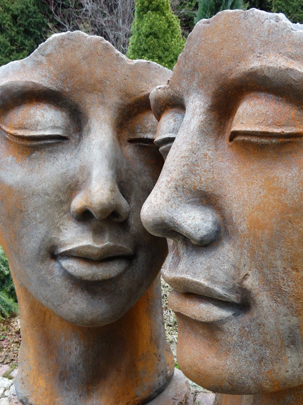 Betonbüsten-Set, Gesicht ‚Frau‘ und ‚Mann‘ mit Rosteffekt – Edle Skulpturen für Ihren Garten