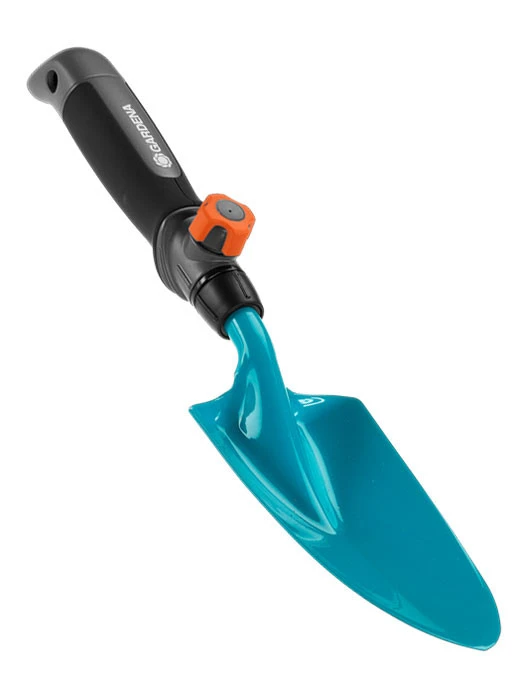Die GARDENA combisystem-Blumenkelle eignet sich optimal zum An- und Umpflanzen in Blumenkästen, Pflanzkübeln und Beeten. Der ergonomisch geformte Griff mit eingearbeiteter Weichkomponente liegt perfekt in der Hand und ist am Ende abgewinkelt, so dass man nicht abrutschen kann. Für ein angenehmes Arbeiten ohne Bücken kann man den Handgriff einfach abnehmen und durch einen beliebigen combisystem-Stiel ersetzen. Die Blumenkelle hat eine Breite von 8,5 cm. Sie ist aus hochwertigem Qualitätsstahl gefertigt. Die Duroplast-Beschichtung sorgt für eine lange Lebensdauer.