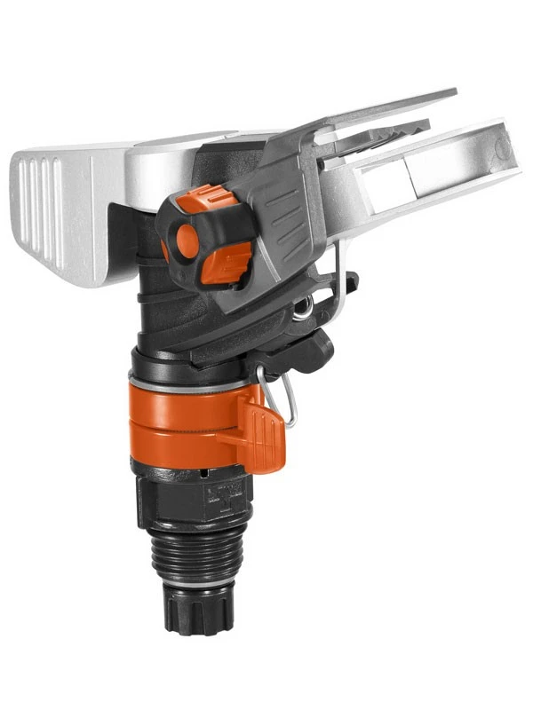 Der GARDENA Premium Impuls-, Kreis- und Sektorenregnerkopf lässt sich einfach auf ein Stativ oder eine Rohrleitung aufbauen. Er besteht aus einer robusten Metall- und Kunststoffkombination. Dadurch wird der Regnerkopf sehr stabil. An den Verstellringen stellen Sie einfach die zu bewässernden Sektoren feinstufig von 25° bis 360° ein.