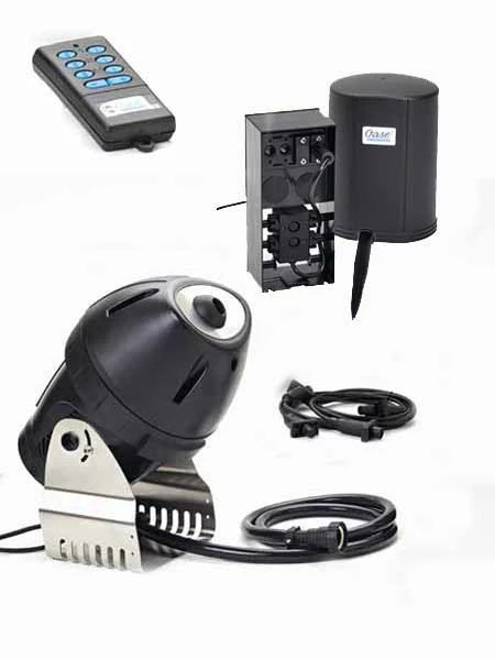 > 1 x Steuerungsbox (12 V Master) mit Mikroprozessor, Empfangseinheit und 10 m Anschlußkabel sowie einer Anschlussmöglichkeit für ein Erweiterungsset für die synchronische Steuerung von max. 2 Jumping Jets.