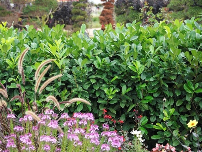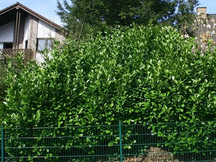 Laub: Das Blattwerk dieses Kirschlorbeers ist besonders auffällig, da die Blätter eine sehr runde Form aufweisen, welche sich deutlich von den anderen Sorten des Kirschlorbeers unterschiedet. Die Blätter sind immergrün und ledrig, glänzend. Durch sie wird das stark verzweigte Geäst des Strauches unterstützt und gemeinsam bilden sie einen perfekten Sichtschutz, der alle unerwünschten Blicke von Ihnen und Ihrem Garten fern hält.