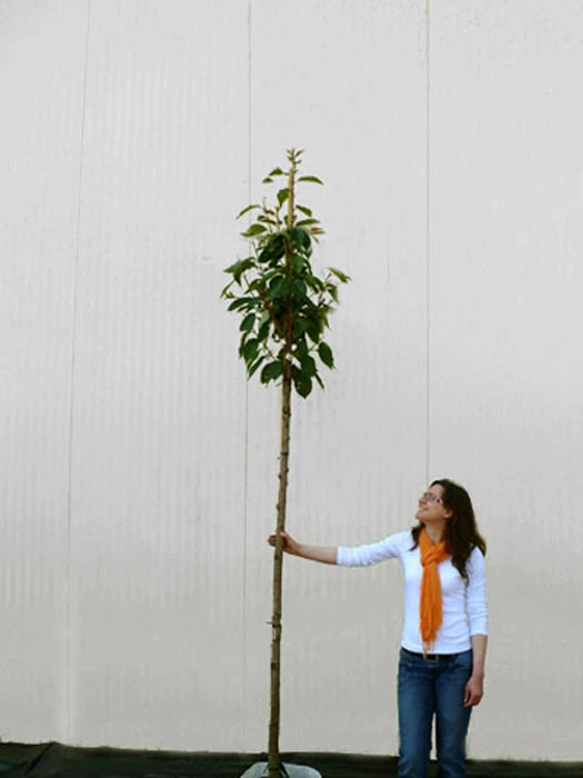 | Lieferqualität: | Junger Hochstamm mit einer Stammhöhe von ca. 2,00 m im Container. Mit einer auf dem Stamm aufsitzenden kleinen Krone, die im Lieferzustand fachgerecht etwas zurück geschnitten ist, um eine gute Kronenentwicklung nach der Verpflanzung zu gewährleisten. Stammhöhe: ca. 2,00 m |