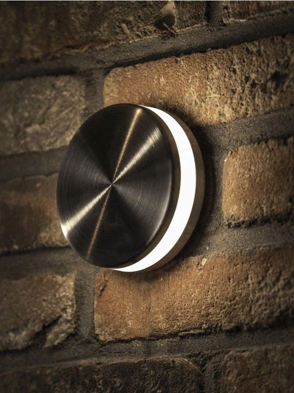 Stilistische Wandleuchte aus Edelstahl die Ihrem Garten oder Terrasse, Haus- oder Wohnwand die besondere Atmosphäre und Tiefe verleiht. Die runde Wandleuchte Aurora hat klare Formen und eine Einheit mit weißer Beleuchtung. Die moderne Hängeleuchte hat einen Verbrauch von 3 Watt bei einer Leuchtkraft von 130 Lumen.